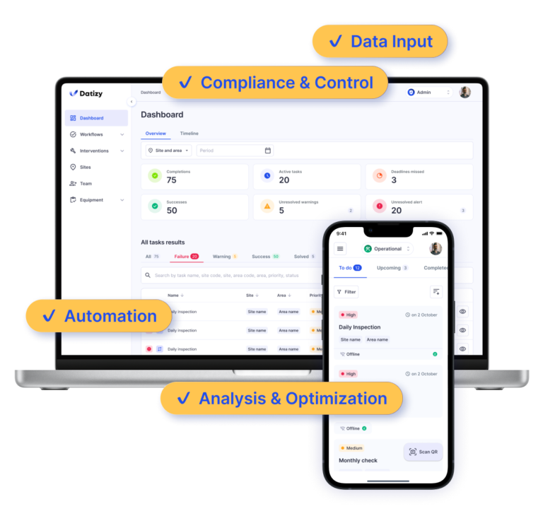 - KPIs by site / area / form / equipment
